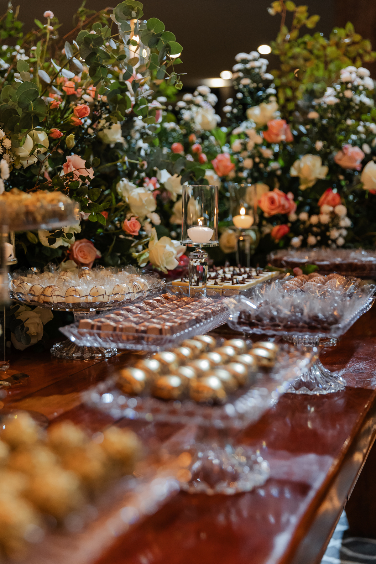 💐 Mesa de Doces Romântica e Sofisticada | Casamento de Isabela e Vinícius – Espaço Quinta da Cantareira